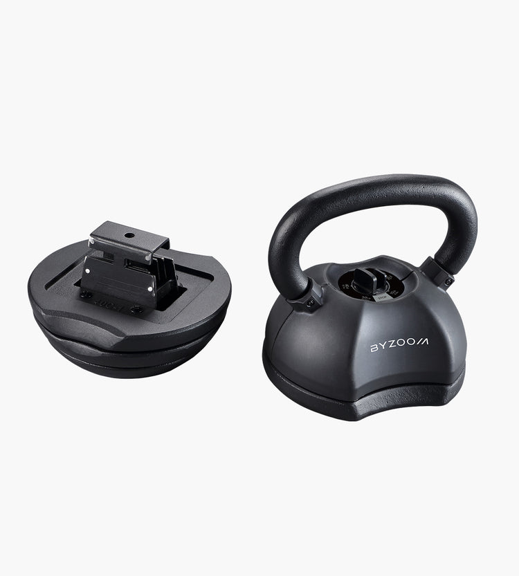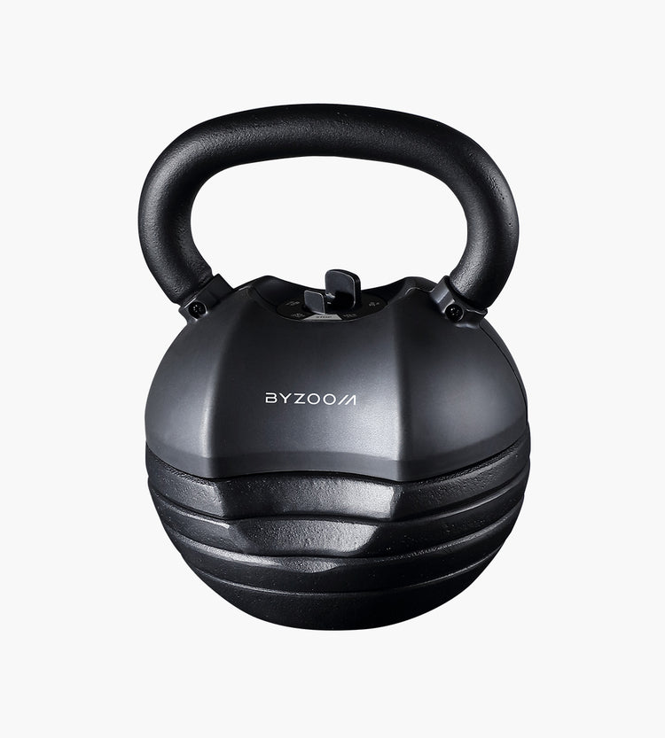 Die Byzoom Fitness verstellbare Kettlebell ist die einzige verstellbare Kettlebell mit ergonomischer Oberfläche. Die Kettlebell ändert die Grösse mit jeder der 5 Gewichtseinstellungen, wobei das ergonomische Design erhalten bleibt.