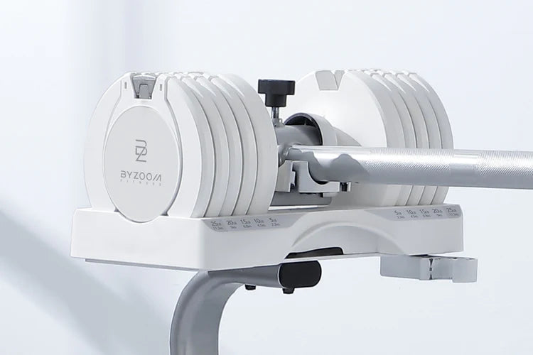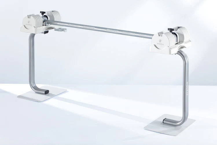 Tout d’abord, fixez la barre Easy Bar aux poignées des haltères. Serrez ensuite le bouton et l’entraînement peut commencer.