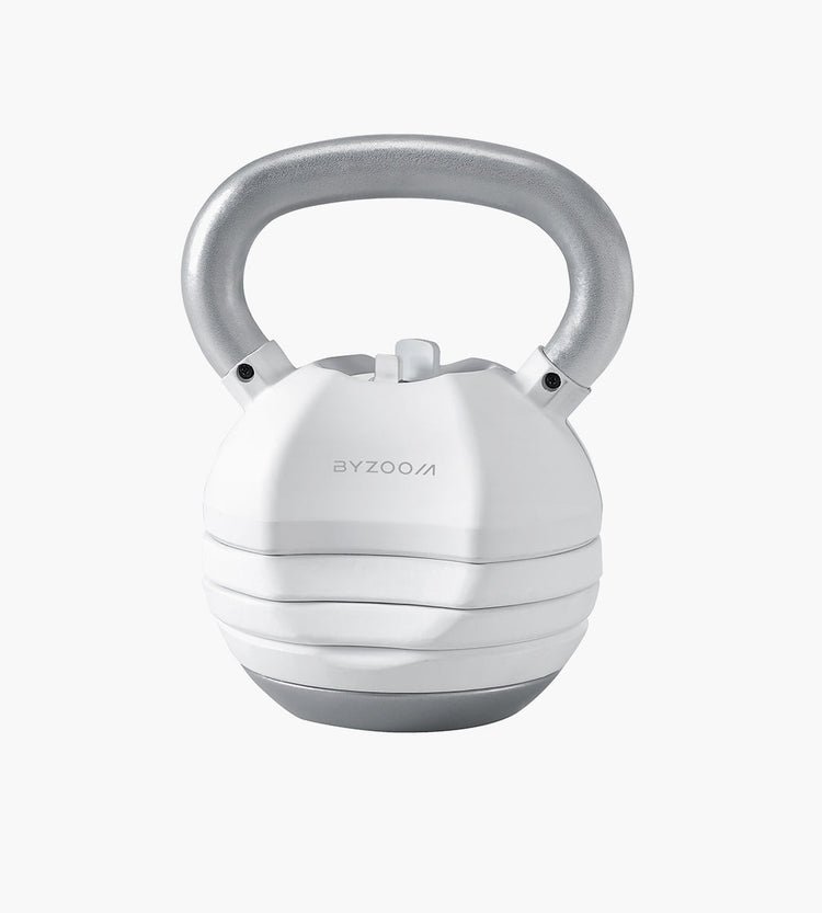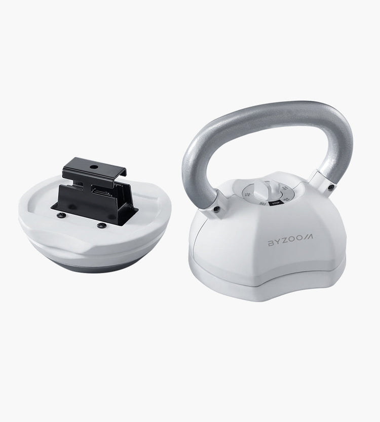 Le kettlebell ajustable Byzoom Fitness est inspiré par le design moderne de meubles, afin de s'intégrer parfaitement dans votre maison. Ainsi, il n'est plus nécessaire de le ranger laborieusement après l'entraînement, mais il devient élégamment une partie de votre décoration.